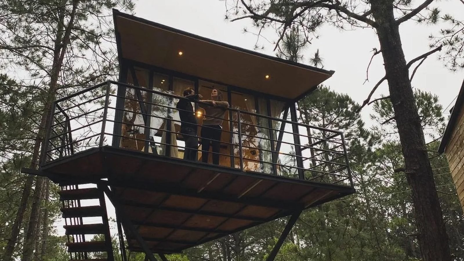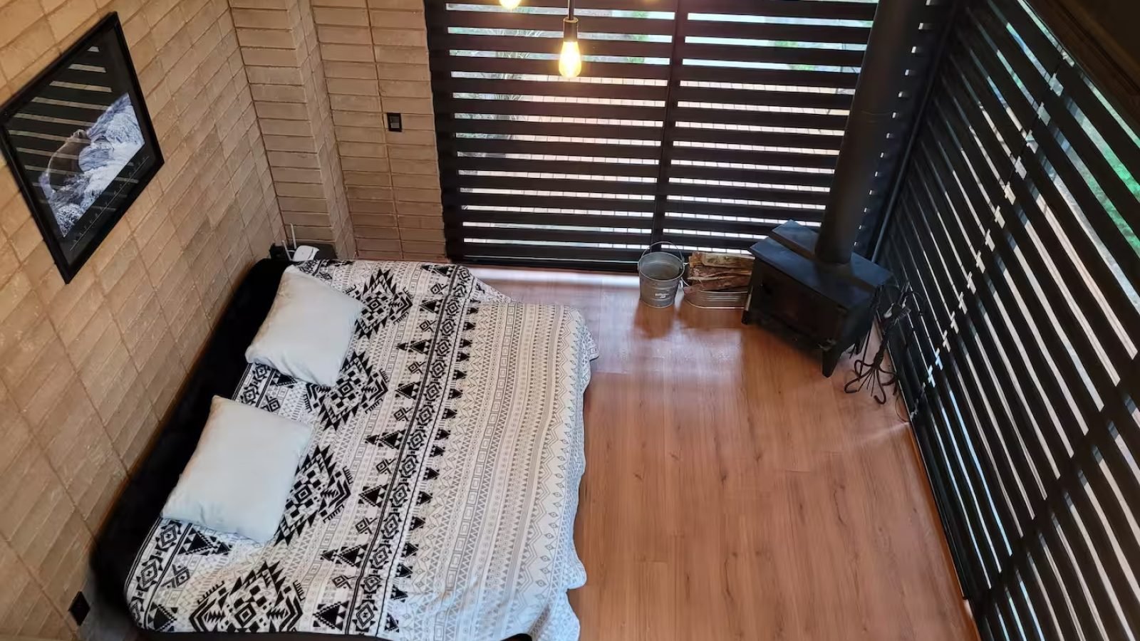 Una cabaña cálida de madera, con techo metálico y una terraza amplia elevada entre pinos, diseñada para despertar con luz natural y dormir con silencio de bosque. El deck tipo mirador invita a desayunar al aire libre, leer, tomar café o ver las estrellas, mientras la vegetación alrededor crea privacidad y una sensación auténtica de refugio. Es el tipo de hospedaje ideal para una escapada romántica o de descanso: simple, acogedor y totalmente conectado con la naturaleza.