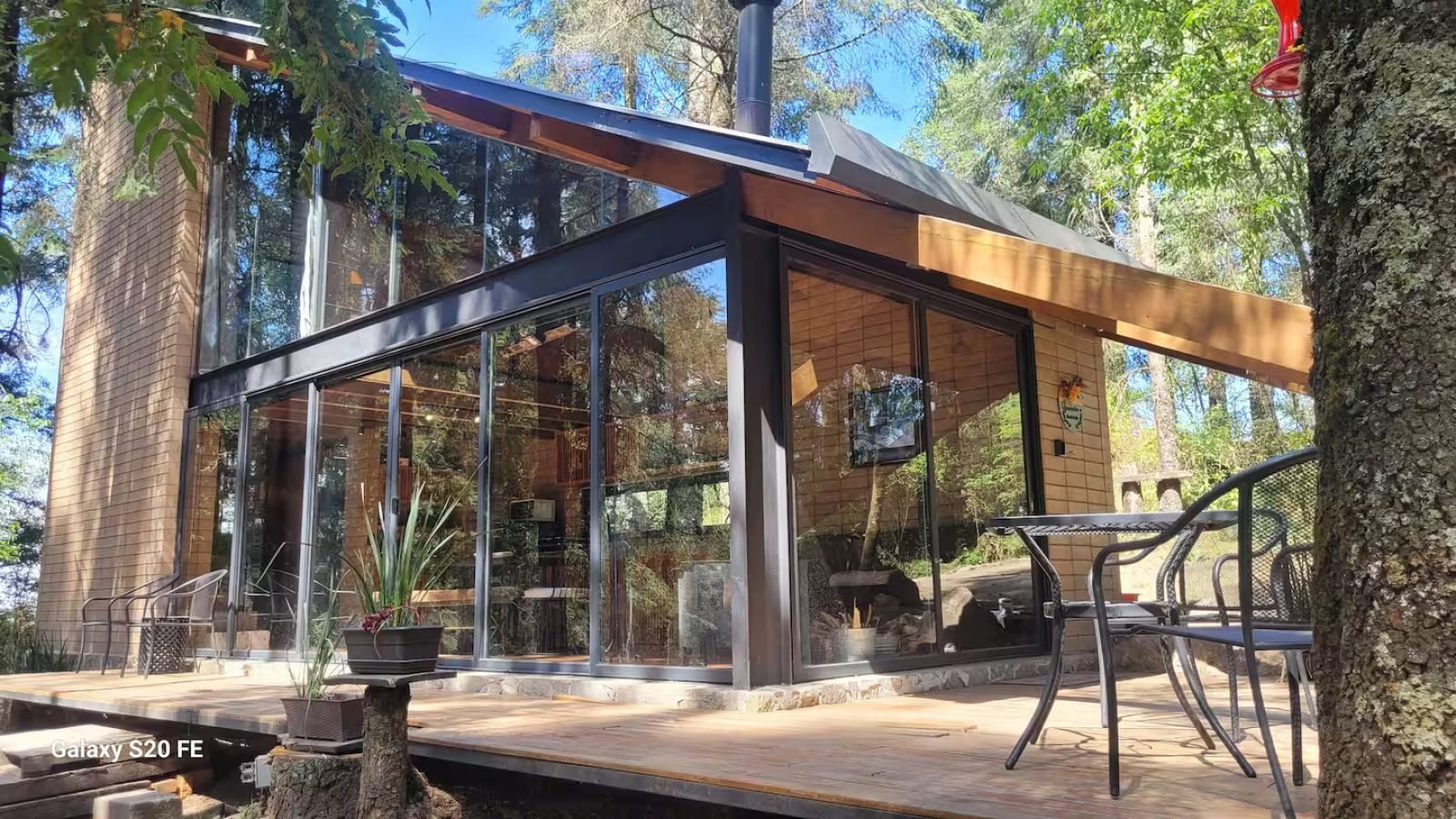 Una cabaña cálida de madera, con techo metálico y una terraza amplia elevada entre pinos, diseñada para despertar con luz natural y dormir con silencio de bosque. El deck tipo mirador invita a desayunar al aire libre, leer, tomar café o ver las estrellas, mientras la vegetación alrededor crea privacidad y una sensación auténtica de refugio. Es el tipo de hospedaje ideal para una escapada romántica o de descanso: simple, acogedor y totalmente conectado con la naturaleza.